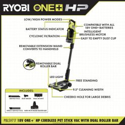 nettoyage RYOBI Kit d’aspirateur balai sans fil pour animaux de compagnie 18 V One+ HP 486FN553