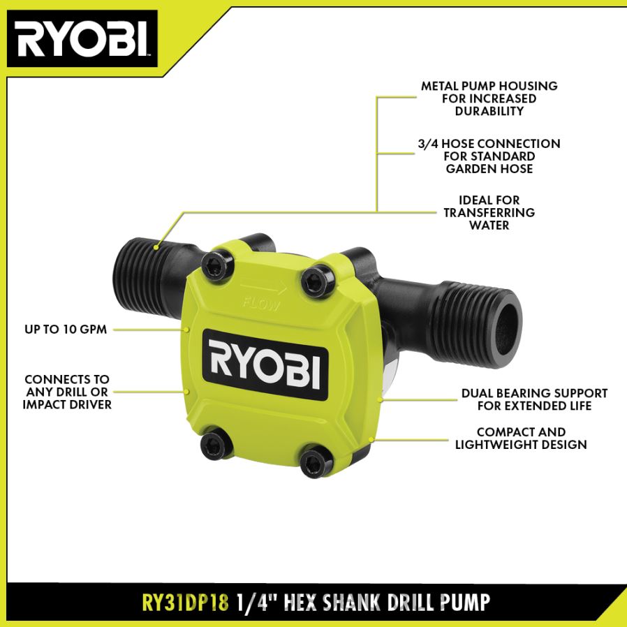 accessoires RYOBI Pompe de forage à tige hexagonale 1/4 486FN850