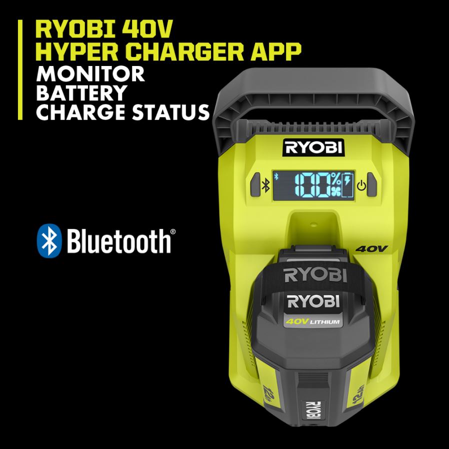 - surveillez l’état de charge de la batterie à l’aide de l’application Hyper Charger Ryobi 40 V