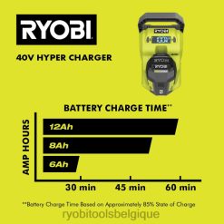 étendez votre système Ryobi 40 V avec l’hyper chargeur au lithium 40 V. avec une charge 6 fois plus rapide qu’un chargeur standard, ce chargeur est le chargeur Ryobi 40 V le plus rapide du système. avec son taux de charge de 10 ampères, il peut charger complètement une batterie de 40 V 6 Ah en seulement 30 minutes et la batterie de 12 Ah en aussi peu qu’une heure, afin que vous puissiez vous remettre au travail rapidement. l’écran LCD affiche l’état de charge de votre batterie, et si vous êtes loin de votre chargeur, dans la cour ou chez vous, vous pouvez afficher l’état de charge sur votre téléphone en utilisant l’application hyper chargeur 40 V et la connexion Bluetooth. la fonction de refroidissement actif réduit le temps de charge tout en prolongeant la durée de vie de la batterie. vous pouvez placer le chargeur sur un établi de travail ou le monter directement sur un mur, libérant ainsi de l’espace dans votre garage ou remise. Mieux encore, il fait partie du ryobiSystème 40 V où n’importe quelle batterie 40 V fonctionne avec n’importe quel produit 40 V. cet hyper chargeur 40 V bénéficie de la garantie fabricant Ryobi de 3 ans et comprend (1) hyper chargeur op4010a 40 V et un manuel d’utilisation. batterie vendue séparément.