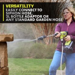 - se connecte à un tuyau d’arrosage, une bouteille, ou un tuyau de siphon dans de l’eau douce