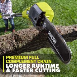 étendez votre système Ryobi 18v one+ avec le kit de scie à perche 18v one+ 8”. le guide-chaîne et la chaîne de 8” ainsi que le moteur puissant s’attaquent aux branches jusqu’à 6”, ce qui le rend idéal pour l’élagage et l’ébranchage. avec jusqu’à 16 coupes par charge et une chaîne complète haut de gamme, la scie à perche offre une durée de fonctionnement plus longue et une coupe plus rapide. Bénéficiez de performances exceptionnelles en appuyant simplement sur une gâchette, sans les tracas du gaz ou des cordons. réalisez des coupes précises grâce à la tête inclinée, à l’extension de 9,5′ et au moteur en ligne. pour plus de commodité, il est doté d’une conception sans huile, d’un système de tension de chaîne avec outils et d’un stockage d’outils intégré. elle est compatible avec la chaîne de remplacement ry8c1 de 8″. Mieux encore, elle fait partie du système Ryobi One+ où n’importe quelle batterie 18 V One+ fonctionne avec n’importe quel produit 18 V One+. Cette scie à perche 18 V One+ 8 poucesbénéficie de la garantie fabricant Ryobi de 3 ans et comprend une batterie 18 V 1,5 Ah, un chargeur 18 V, un poteau de poignée, un poteau intermédiaire, une clé mixte, un fourreau, un harnais d’épaule et des manuels d’utilisation.