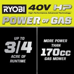 entrez dans le système 40 V avec la tondeuse à gazon automotrice à coupe transversale 21″ sans balais Ryobi 40 V HP. La technologie 40 V HP offre plus de puissance qu’une tondeuse à essence de 170 cc, et cette tondeuse est conçue pour Abordez facilement jusqu’à plusieurs hectares. Les deux ports de batterie actifs et les deux batteries au lithium 40 V 6 Ah incluses vous offrent jusqu’à 70 minutes d’autonomie. Le système multi-lames à coupe transversale offre une coupe supérieure, produisant les meilleurs ensachages, paillage et éjection latérale de l’industrie. La technologie 40 V HP combine un moteur sans balais, des composants électroniques avancés et des batteries au lithium qui réagissent automatiquement aux conditions de tonte en augmentant la vitesse de la lame pour éliminer l’enlisement et fournir de la puissance lors des coupes les plus difficiles. La technologie automotrice adaptative à vitesse variable Smart Trek vous permet de adaptez sans effort la vitesse de la tondeuse à votre rythmee, afin que vous puissiez terminer le travail rapidement et avec moins de fatigue. Mieux encore, elle fait partie du système Ryobi 40 V où n’importe quelle batterie 40 V fonctionne avec n’importe quel produit 40 V. et avec la garantie fabricant de 5 ans sur l’outil et la garantie fabricant de 3 ans sur la batterie, vous pouvez avoir confiance en ses performances pour les années à venir. ce kit de tondeuse comprend la tondeuse à gazon automotrice à coupe transversale sans balais ry401015 40 V HP de 21″, (2) batteries au lithium op40605 40 V 6 Ah, un chargeur rapide op406 40 V, un sac de ramassage d’herbe, une clé de démarrage, un bouchon de paillis, une goulotte d’éjection latérale et un manuel d’utilisation pour l’opérateur. manuels.