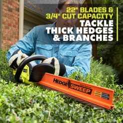- Lames de 24” et une impressionnante Capacité de coupe de 1” pour s’attaquer aux haies épaisses