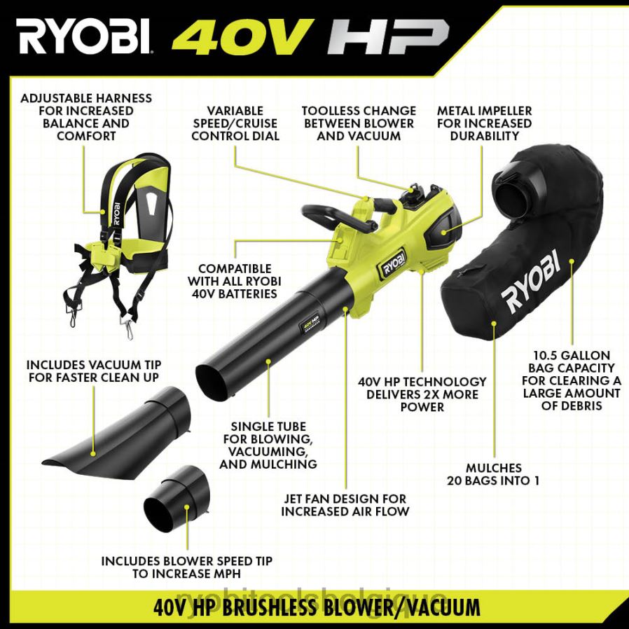 Extérieur RYOBI Kit ventilateur/aspirateur à jet 40 V HP 486FN308