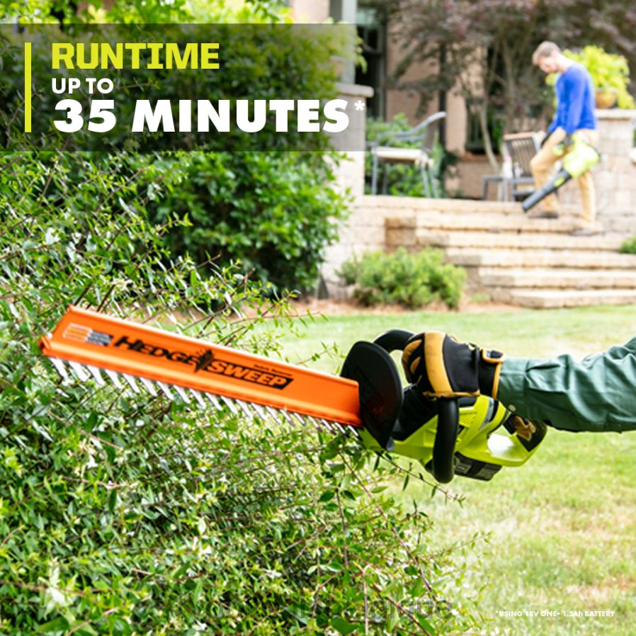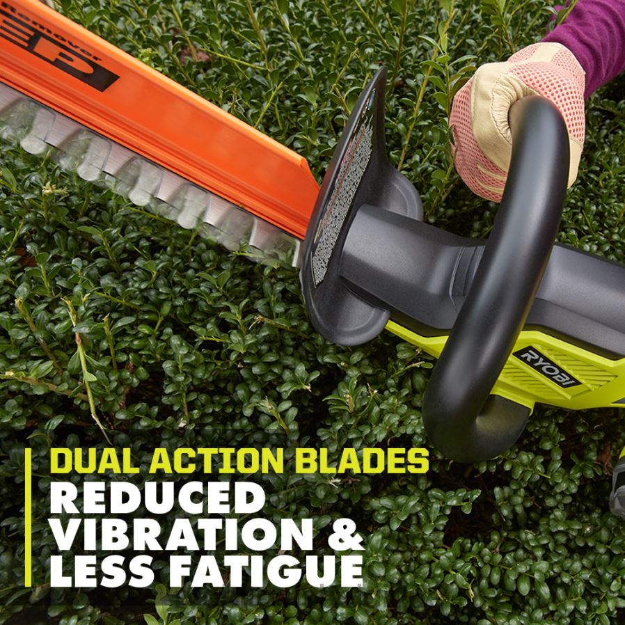 étendez votre système Ryobi 18v one+ avec le taille-haie 18v one+ 22”. le moteur puissant fournit 3 000 coups par minute pour une taille efficace et sans effort des haies, des buissons et des arbustes. profitez jusqu’à 35 minutes d’autonomie avec une batterie au lithium 18 V One+ 1,5 Ah. attaquez facilement les haies difficiles et les branches épaisses avec des lames de 22” et une capacité de coupe de 3/4”. Bénéficiez de performances maximales en appuyant simplement sur une gâchette, sans les tracas du gaz ou des cordons. vous pouvez tailler confortablement les haies et les arbustes sous tous les angles grâce à la poignée rotative, et éliminer facilement les coupures pendant que vous taillez avec l’éliminateur de débris de haie. avec des lames à double action, vous pouvez traverser les haies avec moins de vibrations et moins de fatigue. Mieux encore, il fait partie du système Ryobi One+ – n’importe quelle alimentation 18 V.La batterie ne+ fonctionne avec n’importe quel produit one+ 18 V. ce taille-haie bénéficie d’une garantie fabricant de 3 ans et comprend un taille-haie p2606 18 V, un éliminateur de débris de balayage de haie, un fourreau et un manuel d’utilisation. batterie et chargeur vendus séparément.