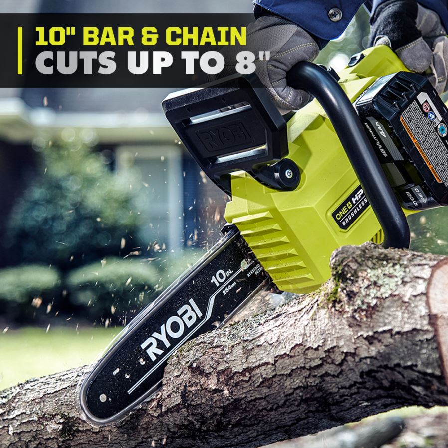 améliorez votre système ryobi 18v one+ avec le kit de tronçonneuse 18v one+ hp brushless 10”. La technologie one+ hp combine un moteur sans balais, une électronique avancée et une technologie au lithium haute performance pour offrir une coupe 85 % plus rapide. cette tronçonneuse effectue jusqu’à 70 coupes par charge avec la batterie lithium-ion 4ah incluse. Bénéficiez de performances exceptionnelles en appuyant simplement sur une gâchette, sans les tracas du gaz ou des accords. le guide-chaîne et la chaîne de 10” peuvent s’attaquer à des coupes jusqu’à 8”, idéales pour l’élagage et l’ébranchage. cet outil est doté d’un graisseur à bouton-poussoir pour libérer facilement l’huile sur la chaîne. compatible avec la chaîne de remplacement ry10c1 10” et n’oubliez pas votre lubrifiant pour guide-chaîne et chaîne rybio24. Mieux encore, elle fait partie du système Ryobi One+ où n’importe quelle batterie 18 V One+ fonctionne avec n’importe quel produit 18 V One+. ce 18v un + hLa tronçonneuse sans balais P de 10 pouces bénéficie de la garantie du fabricant Ryobi de 3 ans et comprend une batterie 18 V 4 Ah, un chargeur 18 V, une clé mixte, un fourreau et des manuels d’utilisation.
