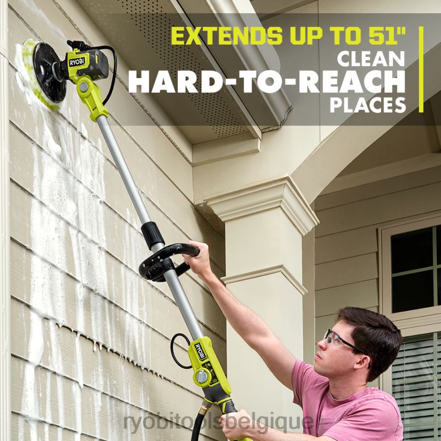 améliorez votre système Ryobi 18v one+ avec le kit d’épurateur télescopique à distribution de savon 18v. prenez cette autolaveuse motorisée et laissez les éponges dans le garage, ainsi que les maux de dos qui accompagnent les méthodes de nettoyage manuelles traditionnelles. la portabilité sans fil et la conception légère sont parfaites pour le nettoyage en déplacement. la commodité de l’épurateur télescopique à distribution de savon 18 V est d’avoir le pouvoir de tout faire avec une liberté sans fil ; Vaporisez avec précision la solution de savon Ryobi incluse, allumez l’autolaveuse et laissez-la faire tout le travail à votre place. cette brosse télescopique améliorée vous offre une expérience de nettoyage sans effort grâce à la technologie de distribution de savon et d’eau. il est compatible avec plus de 25 accessoires de connecteurs à tige hexagonale et triangulaire – allant de la microfibre en peluche pour un nettoyage en douceurg aux poils abrasifs pour l’enlèvement de matière (vendus séparément). la brosse à poils moyens de 6 po incluse est idéale pour nettoyer les carreaux, la fibre de verre, les revêtements extérieurs et plus encore. la tête pivotante à 6 positions et la perche télescopique de 51” vous permettent de nettoyer les zones difficiles d’accès en hauteur et en basse. vous pouvez nettoyer en toute confiance en sachant que le boîtier de batterie de l’autolaveuse est doté d’un indice de résistance à l’eau ipx7, ce qui signifie que cet outil peut être immergé dans jusqu’à 3 pieds d’eau pendant 30 minutes. Mieux encore, il fait partie du système Ryobi 18v one+ composé de plus de 260 produits sans fil qui fonctionnent tous sur la même plate-forme de batterie. ce kit d’épurateur télescopique à distribution de savon 18 V One+ bénéficie de la garantie du fabricant Ryobi de 3 ans et comprend une pâte au lithium 18 V 2 Ah, un chargeur, une brosse à poils moyens de 6”, 8 oz. solution savonneuse et manuels d’utilisation.