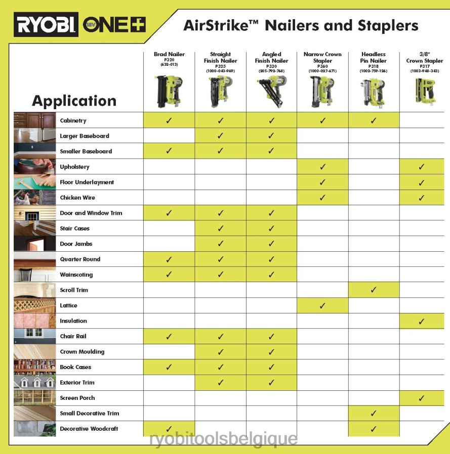 ryobi vous apporte encore plus d’innovation sans fil avec la nouvelle cloueuse à goupilles sans fil p318 de calibre 23. Découvrez le nec plus ultra en matière de confort de clouage avec la technologie Airstrike de Ryobi. aucun compresseur, cartouche de gaz ou tuyaux n’est nécessaire. enfoncez des clous à goupilles de 1/2 po à 1-3/8 po, réalisant ainsi les plus gros travaux avec jusqu’à 3 500 clous à goupilles livrés par charge. placez chaque clou avec confiance et précision à l’aide du guide de bord inclus. clip de ceinture inclus pour plus de commodité. une puissante lumière LED illumine votre pièce à travailler tandis que 2 tampons non marquants maintiennent votre surface de travail exempte de marques d’outils. l’adhérence et le confort supplémentaires de la zone de préhension surmoulée vous permettent de continuer aussi longtemps que votre batterie one+. Ryobi. fonctionnalités professionnelles. prix abordable. disponible exclusivement chez Home Depot.