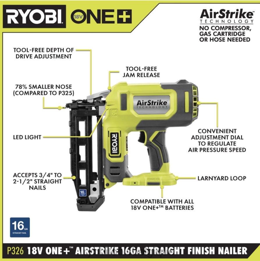 outils électroportatifs RYOBI Kit de cloueuse de finition 18v one+ airstrike 16ga 486FN171