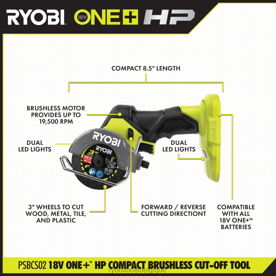 outils électroportatifs RYOBI Outil de tronçonnage compact sans balais 18 V one+ hp – outil uniquement 486FN114