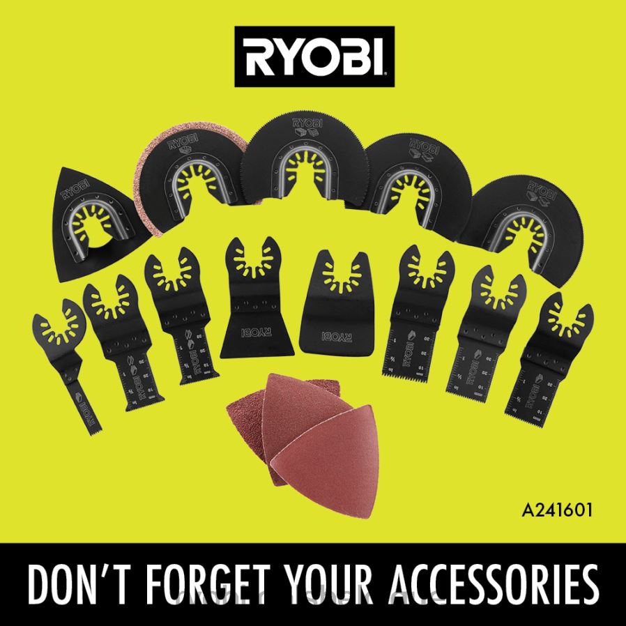 l’outil multifonction oscillant sans balais Ryobi 18v one+ hp offre plus de puissance pour obtenir une coupe jusqu’à 80 % plus rapide et 2,5 fois plus de coupes sur un charge unique lors de la coupe de matériaux comme le bois, les cloisons sèches, le plastique et le métal. La technologie one+ hp offre plus de puissance, d’autonomie, de durabilité et de vitesse grâce à des moteurs sans balais, une électronique avancée et une technologie au lithium haute performance. un angle d’oscillation de 3,8 donne à cet outil la puissance nécessaire à la démolition et son cadran de vitesse variable permet des vitesses de 0 à 20 000 opm offrant un contrôle dans les applications détaillées. éliminez la fatigue grâce au bouton de verrouillage intégré lors de tâches prolongées. et lorsque vous travaillez dans des zones faiblement éclairées, utilisez la lampe de travail LED pour éclairer votre espace. cet outil se transforme en ponceuse de détail avec le sandin inclusg pad et peut même enlever le coulis avec une lame à coulis, vous donnant la possibilité d’effectuer plusieurs tâches avec un seul outil. utilisez le changement d’accessoire sans outil pour basculer rapidement entre les lames incluses et le patin de ponçage avec peu de temps d’arrêt. Mieux encore, elle fait partie du système Ryobi One+ où n’importe quelle batterie 18 V One+ fonctionne avec n’importe quel produit 18 V One+ et est compatible avec la plupart des accessoires multi-outils. cet outil multifonction oscillant sans balais 18 V one+ hp est couvert par une garantie limitée de 3 ans et comprend une lame à coupe plongeante, une lame à coupe affleurante, un patin de ponçage, 3 papiers de verre (grains 60, 80 et 120) et un manuel d’utilisation.