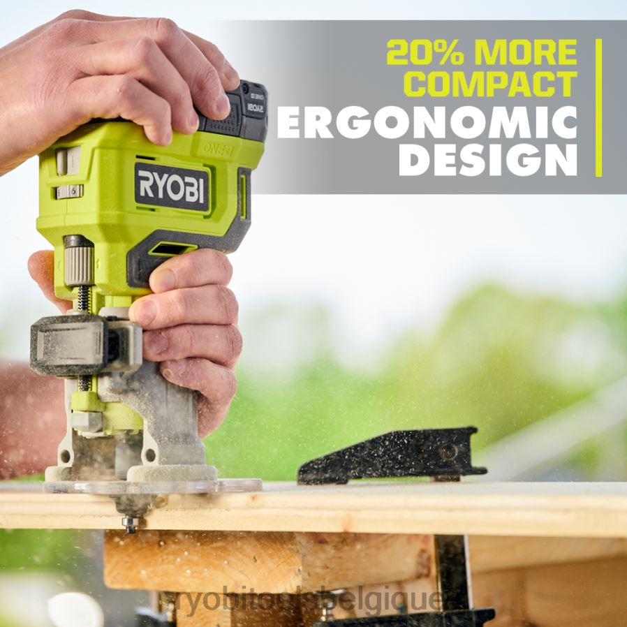 ryobi présente la toupie compacte 18 V one+ (outil uniquement). Cette toupie fonctionne entre 20 000 et 30 000 tr/min, permettant aux utilisateurs de tailler avec une puissance et une précision améliorées dans toutes les applications. changez facilement la profondeur de coupe avec le réglage micro et macro de la profondeur. le nouveau routeur compact one+ est 20 % plus compact (que le p601) et son nouveau design ergonomique contribue à offrir confort et contrôle lors d’une utilisation prolongée. Bénéficiant de la garantie fabricant Ryobi de 3 ans, le routeur compact comprend une clé à pince, une goulotte à poussière sous vide et un manuel d’utilisation. batterie et chargeur vendus séparément.