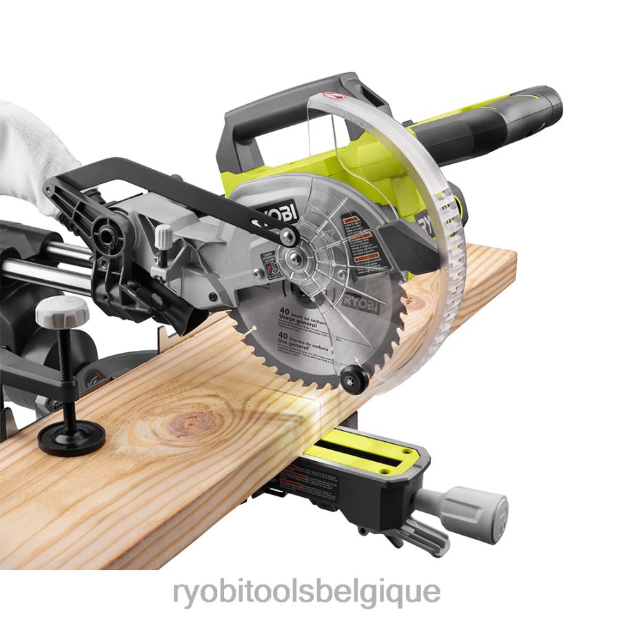 ryobi présente la scie à onglets coulissante de 7-1/4 po. cette scie est compacte et légère, ce qui la rend portable et parfaite pour les travaux de bricolage à la maison. le moteur robuste de 10 A fournit jusqu’à 5 350 tr/min pour la puissance nécessaire pour effectuer des coupes difficiles ou une variété de petites coupes dans le bois. il dispose d’un port anti-poussière de 1-1/4 po pour vous aider à garder votre zone de travail propre. la lame à pointe en carbure de 40 dents offre des performances améliorées pour des coupes rapides et nettes et des coupes transversales jusqu’à une taille nominale de 2 po x 10 po. Bénéficie de la garantie du fabricant Ryobi de 3 ans, de l’onglet coulissant de 7 1/4 po. La scie comprend une lame à pointe en carbure de 40 dents, une clé à lame, un sac à poussière, une pince de travail, deux poignées de transport et un manuel d’utilisation.