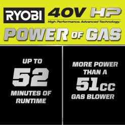 Extérieur RYOBI Kit de souffleur à dos sans balais 40 V HP série Whisper, 730 cfm 486FN301