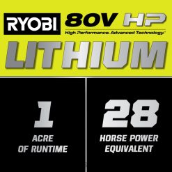 Extérieur RYOBI Tondeuse autoportée électrique sans balais, 80v hp, 30 lithium, tour à zéro 486FN223