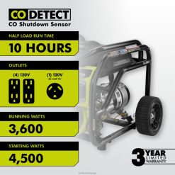 outils RYOBI Génératrice de 3 600 watts avec capteur d’arrêt de CO 486FN545