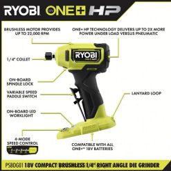 outils électroportatifs RYOBI Meuleuse à angle droit 1/4 compacte sans balais one+ hp 18v 486FN112