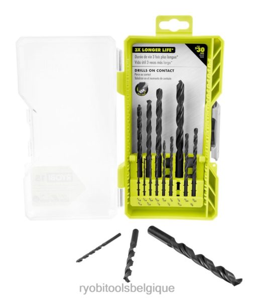 ryobi présente le jeu de forets à oxyde noir à tige ronde de 15 pièces. cet assortiment de forets est parfait pour les matériaux tels que les surfaces en bois, en métal et en plastique. les embouts sont fabriqués en acier rapide avec une finition en oxyde noir pour offrir une durabilité supérieure et une durée de vie 3 fois plus longue. une autre caractéristique de ces forets est la pointe divisée à 135 degrés pour percer au contact et empêcher votre foret de marcher. le couvercle transparent du boîtier offre une visibilité pour une meilleure facilité d’accès. cet assortiment comprend des embouts allant de 1/16″ à 3/8″ pour tous vos besoins de bricolage. cet ensemble comprend (2) foret à oxyde noir de 1/16″, (1) foret à oxyde noir de 5/64″, (1) foret à oxyde noir de 3/32″, (1) foret à oxyde noir de 7/64″. , (2) foret à oxyde noir de 1/8″, (1) foret à oxyde noir de 9/64″, (1) foret à oxyde noir de 5/32″.L, (1) foret à oxyde noir de 3/16″, (1) foret à oxyde noir de 7/32″, (2) foret à oxyde noir de 1/4″, (1) foret à oxyde noir de 5/16″. , (1) foret à oxyde noir de 3/8″.