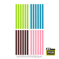 le paquet de 24 bâtons de colle de couleur chaude Ryobi est parfait pour une utilisation sur le bois, le plastique, la céramique, les tissus, le carton et divers tissus. la capacité de fusion double vous prépare à diverses applications. pour de meilleurs résultats, associez toujours vos outils Ryobi avec des accessoires Ryobi. le Ryobi A1932403 comprend 8 bâtons de colle rouges, 8 oranges et 8 jaunes pleine grandeur.