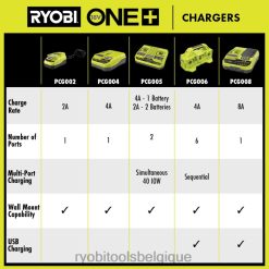étendez votre système Ryobi 18v one+ avec le chargeur rapide Ryobi 18v one+ 8a. la charge a été rendue plus rapide que jamais. avec une charge 4 fois plus rapide que le pcg002, ce chargeur réduit considérablement les temps d’arrêt, permettant aux utilisateurs de charger une batterie au lithium haute performance de 8 Ah en moins d’une heure. doté de voyants LED, les utilisateurs peuvent facilement identifier l’état de charge de la batterie. les ports de chargement USB-C et USB-A permettent aux utilisateurs de charger facilement leurs appareils électroniques portables. les pieds en caoutchouc offrent une base antidérapante pour empêcher votre chargeur de glisser dans votre espace de travail. le mode d’économie d’énergie conserve l’énergie lorsque vous ne chargez pas ou n’entretenez pas les batteries. pour maximiser l’espace de travail, la capacité de montage mural garantit l’organisation à tout moment. Mieux encore, il fait partie du système Ryobi 18v One+ de plus de 280 CO.Des produits sans fil qui fonctionnent tous sur la même plateforme de batterie. ce chargeur rapide 18 V one+ 8 A bénéficie de la garantie fabricant Ryobi de 3 ans et comprend (1) chargeur rapide PCG008 18 V 8 A et un manuel d’utilisation. batterie vendue séparément.