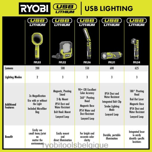 ryobi présente le kit de lampe d’inspection LED USB au lithium. Avec jusqu’à 550 lumens d’un indice de rendu des couleurs élevé de 90+ et 3 modes d’éclairage, cette lampe de poche offre une clarté de couleur claire, lumineuse et précise dans un design compact et durable. cette lumière à rendu de couleur élevé offre jusqu’à 32 heures d’autonomie et constitue la solution parfaite pour les applications où il est crucial de voir des couleurs précises. avec un indice de résistance à l’eau et à la poussière IP54, cette lampe est conçue pour résister aux conditions les plus difficiles. Le kit de lampe d’inspection LED compacte au lithium USB fait partie du système USB au lithium qui fournit des solutions compactes, portables et rechargeables pour l’alimentation et la productivité sans fil. Ce kit de lampe d’inspection LED USB au lithium bénéficie de la garantie du fabricant Ryobi de 2 ans.d comprend (1) lampe d’inspection LED fvl56, (1) batterie usb au lithium 2ah fvb01, câble USB et manuels d’utilisation.