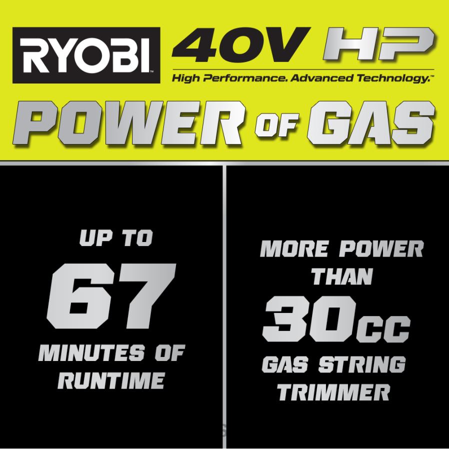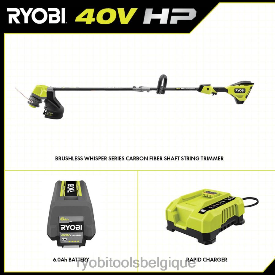 Extérieur RYOBI Kit de coupe-bordure avec arbre en fibre de carbone, série 17, sans balais, 40v hp, série 17 486FN285