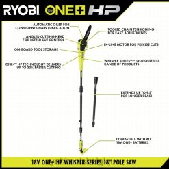 La scie à perche sans fil Ryobi 18v one+ hp de 8″ gardera vos arbres et votre cour les plus beaux du quartier. La technologie one+ hp offre une coupe jusqu’à 30 % plus rapide. non seulement vous pourrez faire le travail rapidement, mais vous pourrez également le terminer en silence car cette scie à perche fait partie de la gamme de produits de la série Whisper de Ryobi, notre gamme de produits la plus silencieuse. avec extension jusqu’à 9,5′, inclinée Tête de coupe et moteur en ligne, cette scie à perche est idéale pour l’élagage et l’ébranchage pour un retrait facile des branches. Elle dispose également d’un graisseur automatique, d’un tendeur de chaîne avec outils et d’un stockage d’outils intégré pour votre commodité. Ce kit comprend un Ryobi 2ah Batterie et chargeur lithium-ion. La scie à perche sans fil Ryobi 18 V HP sans balais 8″, la batterie 18 V One+ 2 Ah et le chargeur 18 V One+ sont compatibles avec tous les ry.produits obi 18v one+. cet outil et cette batterie bénéficient d’une garantie de 3 ans.