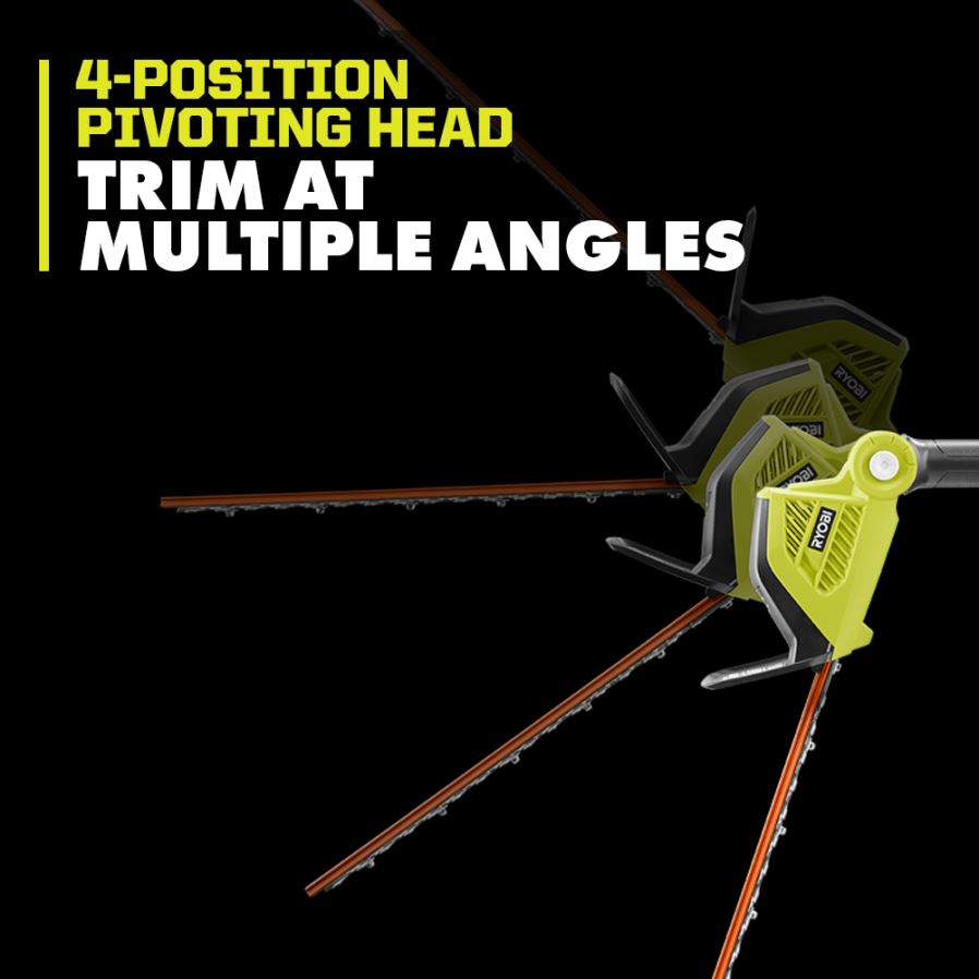 étendez votre système 40 V avec le kit taille-haie à perche 40 V 24”. Découvrez les performances du gaz en appuyant simplement sur une gâchette. pas de gaz, pas d’entretien, pas de tracas. la batterie au lithium 40 V 2 Ah offre une autonomie prolongée, alimentant les lames de 18” avec une capacité de coupe de 5/8” pour s’attaquer facilement aux haies. la rallonge incluse permet d’atteindre jusqu’à 8′, coupant facilement les haies et les buissons difficiles à atteindre. De plus, la tête pivotante à 4 positions vous permet d’ajuster les lames pour couper sous différents angles. avec des lames à double action, vous pouvez traverser les haies avec moins de vibrations et moins de fatigue. Mieux encore, elle fait partie du système Ryobi 40 V où n’importe quelle batterie 40 V fonctionne avec n’importe quel produit 40 V. ce taille-haie sur perche 40 V bénéficie de la garantie du fabricant Ryobi de 5 ans et duLa batterie incluse bénéficie de la garantie Ryobi de 3 ans sur la batterie. ce kit comprend le taille-haie sur perche ry40603 40 V, la batterie au lithium op40204 40 V 2 Ah, le chargeur op404 40 V, la rallonge, la poignée, le fourreau, la bandoulière et les manuels d’utilisation.