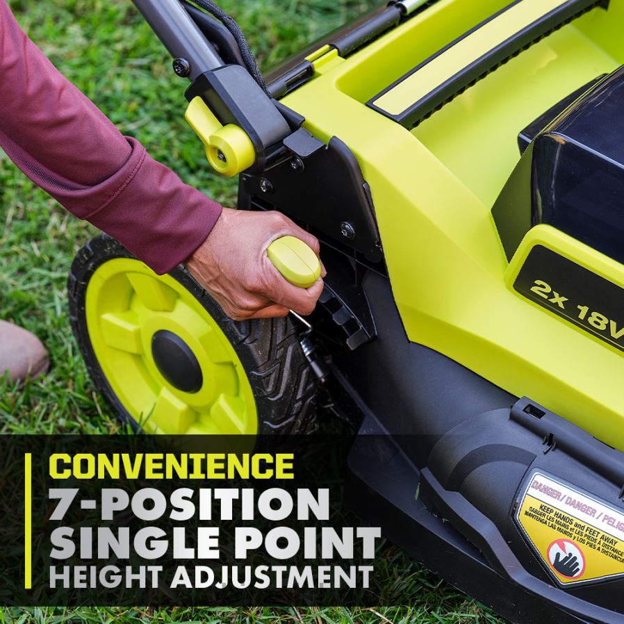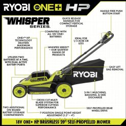 entrez dans le système 18v one+ avec le ryobi one+ 18v hp brushless 20″ auto- Tondeuse à gazon propulsée. Alimentée par la technologie révolutionnaire One+ HP, cette tondeuse délivre plus de puissance qu’une tondeuse à essence de 150 cm3, tout en étant 60 % plus silencieuse que les tondeuses à essence et encore plus silencieuse que les autres tondeuses sans fil. Avec (4) batteries 18 V One+ 4 Ah incluses. Cette tondeuse offre jusqu’à 45 minutes d’autonomie, ce qui la rend parfaite pour les pelouses jusqu’à 1/3 d’acre. Le système multi-lames à coupe croisée offre une coupe supérieure, produisant les meilleurs ensachages, mulching et éjection latérale de l’industrie. La technologie one+ hp combine un moteur sans balais, une électronique avancée et une technologie au lithium haute performance qui fonctionnent ensemble pour augmenter la vitesse et la puissance de la lame lors des coupes les plus difficiles, le tout en appuyant simplement sur un bouton.Le système d’entraînement automoteur à grande vitesse garantit une expérience de tonte efficace et sans effort. avec des fonctionnalités telles que des poignées faciles à plier pour un rangement compact, un réglage de la hauteur en un seul point et un retrait facile du sac, la tonte et le stockage n’ont jamais été aussi faciles. Mieux encore, elle fait partie du système Ryobi 18v one+ où n’importe quelle batterie 18v one+ fonctionne avec n’importe quel produit 18v one+. le kit comprend la tondeuse à gazon sans balais p11011 18v one+ hp 20″, (4) batteries au lithium pbp005 18v one+ 4ah, (2) chargeurs rapides p117 18v one+, un sac de ramassage d’herbe, un bouchon de paillis, une clé de démarrage, une goulotte d’éjection latérale et des manuels d’utilisation .