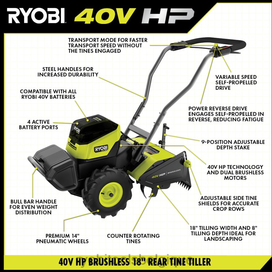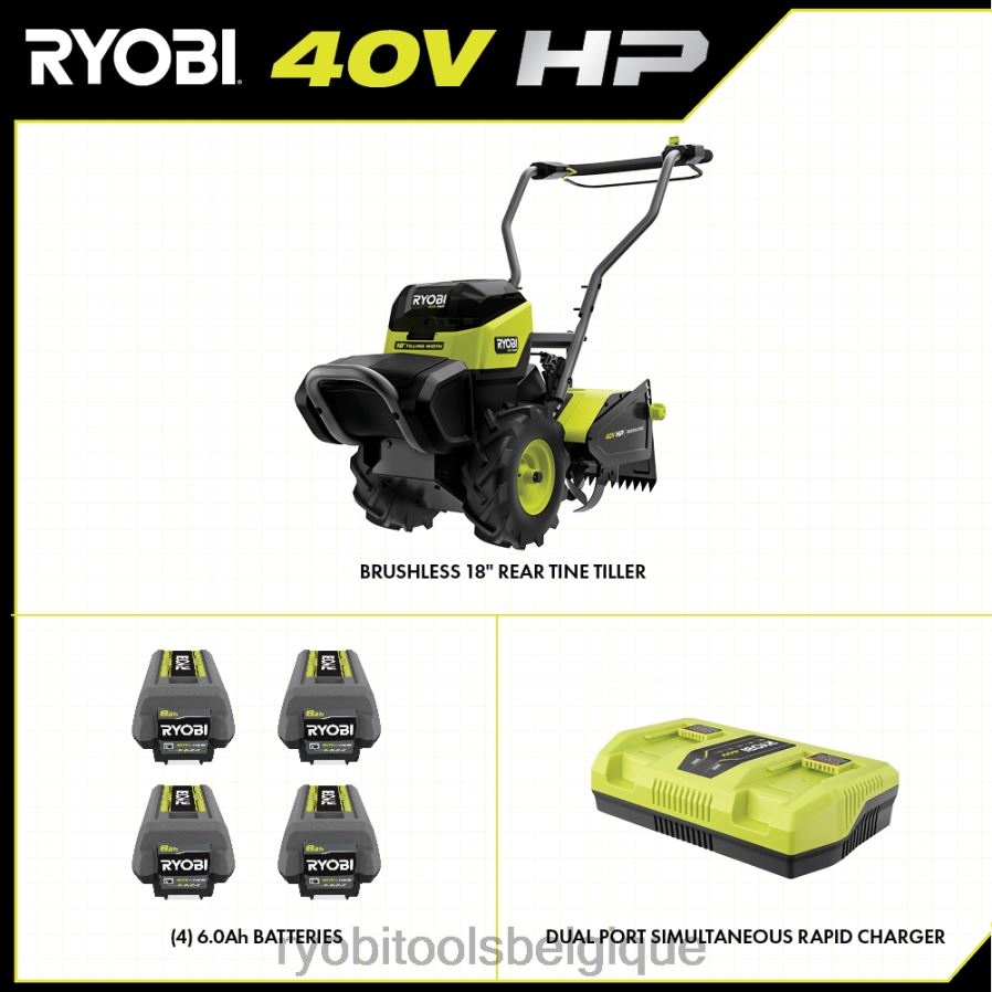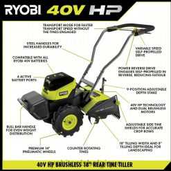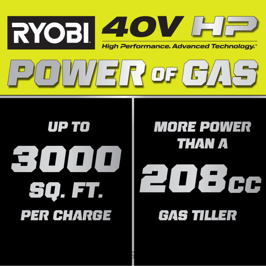 Extérieur RYOBI Motoculteur à dents arrière sans balais de 40 V HP à 18 dents 486FN449