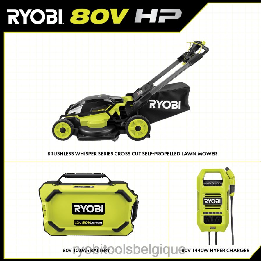 Extérieur RYOBI Tondeuse à gazon automotrice à coupe croisée, série 30, sans balais, 80 V HP 486FN233