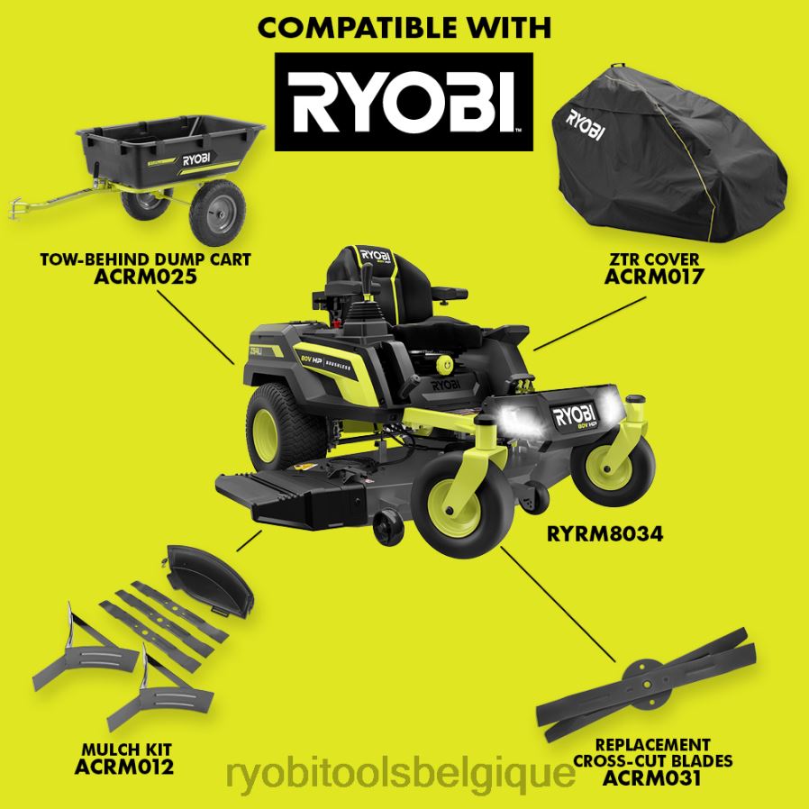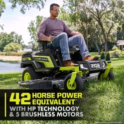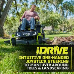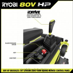 présentation de la première tondeuse autoportée à braquage nul alimentée par batterie lithium-ion de Ryobi, la ryobi 80 V HP 54″ Lithium Electric Ztr*. La technologie HP et les batteries 80 V se combinent pour fournir l’équivalent de puissance d’une puissance de 42 chevaux. moteur à essence*, tout en éliminant les tracas et l’entretien d’une tondeuse à essence. Ce pilote coupe jusqu’à 4 acres par charge à l’aide de 5 moteurs sans balais, (3) batteries 80 V 10 Ah et (4) batteries 40 V 12 Ah, avec un hyper chargeur qui se recharge complètement en 5 heures pour que vous soyez prêt pour votre prochain travail. le système idrive révolutionnaire utilise un joystick intuitif à une main pour manœuvrer autour des objets plus facilement qu’un ztr traditionnel. l’écran LCD innovant affiche l’autonomie, la durée de vie de la batterie, et la vitesse de coupe/conduite pendant l’utilisation, tandis que l’application de tondeuse autoportée vous permet de surveiller le temps de charge et la batterie.toute la vie à distance. cette tondeuse autoportée est dotée du système multi-lames à coupe croisée, offrant des performances de coupe et de déchiquetage supérieures, tandis que le réglage de la hauteur en 12 points vous permet de sélectionner la hauteur de coupe parfaite entre 1,5″ et 4,5″. la goulotte d’éjection latérale en caoutchouc facilite les manœuvres autour de l’aménagement paysager afin que les utilisateurs ne soient pas limités par l’endroit où ils peuvent couper. conçue dans un souci de confort et de commodité, cette tondeuse est dotée d’une suspension de siège haut de gamme, de 2 ports USB pour recharger les téléphones, d’un compartiment de rangement et de phares à LED. service mobile disponible dans certaines régions. si votre tondeuse autoportée nécessite une attention, un technicien d’assistance certifié Ryobi peut diagnostiquer et entretenir directement depuis votre domicile. certains services peuvent vous obliger à apporter votre tondeuse dans l’un des plus de 300 centres de service à travers le pays. L’entretien de la pelouse ne sera plus jamais le même grâce à la tondeuse autoportée électrique sans balais au lithium de 54 po à rayon de braquage nul de 80 V HP de Ryobi.