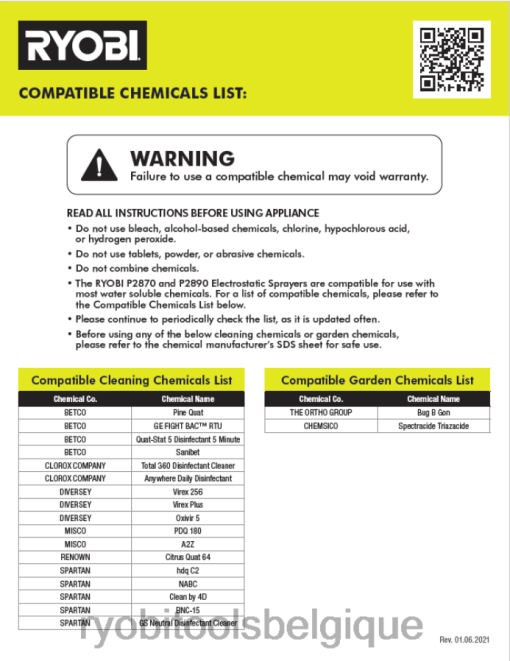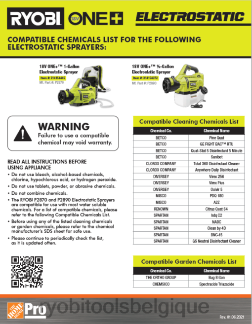 entrez dans le système Ryobi 18v one+ avec le kit de pulvérisateur électrostatique 18v one+ gallon. le moteur puissant offre une plage de pulvérisation de 2′ à 10′ et jusqu’à 30 gallons par charge. Bénéficiez de performances exceptionnelles en appuyant simplement sur une gâchette, sans pompage manuel requis. Les pulvérisateurs électrostatiques Ryobi utilisent la technologie électrostatique pour charger positivement les particules afin de permettre aux solutions de couvrir les surfaces plus rapidement et plus uniformément, réduisant ainsi l’utilisation de produits chimiques et augmentant l’efficacité. le réservoir translucide d’un gallon est idéal pour une utilisation avec des solutions de nettoyage, des herbicides, des insecticides, des fongicides et la plupart des autres produits chimiques pour pelouse et jardin. Abordez une variété d’applications avec le sélecteur de buse réglable 3 en 1. activez facilement la technologie électrostatique avec le bouton marche/arrêtcommutateur et choisissez la taille de gouttelette souhaitée entre 65 microns, 85 microns et 160 microns. transportez-le facilement d’un travail à l’autre grâce à sa conception légère et portable et à sa poignée de transport. utilisez votre pulvérisateur toute l’année avec une solution de pulvérisation pour chaque saison. Mieux encore, elle fait partie du système Ryobi One+ où n’importe quelle batterie 18 V One+ fonctionne avec n’importe quel produit 18 V One+. ce kit de pulvérisateur électrostatique 18 V d’un gallon et plus bénéficie de la garantie du fabricant Ryobi de 3 ans et comprend un pulvérisateur électrostatique P2809 18 V One+, une batterie au lithium P190 18 V 2 Ah, un chargeur P118b 18 V, (2) dragonnes et des manuels d’utilisation.
