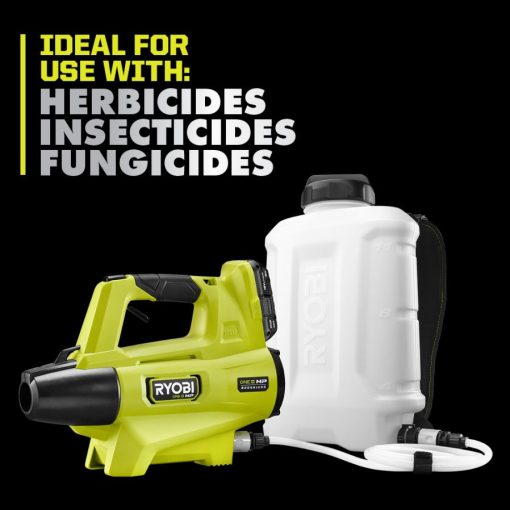 - Pulvérisez jusqu’à 28 gallons par charge avec le ventilateur éteint ou 5 gallons par charge avec le ventilateur allumé avec une batterie Ryobi 18v one+ 2ah
