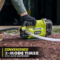 la pompe de transfert d’eau Ryobi 18v one+ hp est idéale pour déplacer l’eau des zones indésirables vers un autre endroit. la technologie hp avec un moteur sans balais permet à la pompe de transfert d’atteindre un débit impressionnant de 10 gpm à 1/4 de puissance. cette pompe peut être utilisée pour une variété d’applications avec une hauteur de tête de 54′ et une hauteur de levage de 17′. Aidez à améliorer la durée de fonctionnement et à prolonger la durée de vie de la pompe grâce à l’utilisation de la minuterie d’arrêt automatique à 3 modes avec des réglages à 5, 10, 15 minutes ou du capteur d’arrêt automatique qui détecte lorsqu’aucune eau n’est détectée. la pompe de transfert offre 3 vitesses variables par minute pour réduire les tâches délicates comme le déplacement d’une petite quantité d’eau ou utiliser la totalité de 10 gpm pour déplacer de plus grandes quantités d’eau. le boîtier de la pompe en métal et le boîtier de batterie scellé et résistant à l’eau garantissent la longévité et la sécurité du transpompe de transfert. la plaque de base montable permet un rangement pratique ou un déplacement d’eau sans effort sans avoir à transporter la pompe avec vous. le filtre d’admission inclus permet à la pompe de drainer le niveau d’eau jusqu’à 1/16″. La pompe de transfert d’eau Ryobi 18 V One+ HP est livrée avec une batterie 18 V One+ 2 Ah et une garantie limitée de 3 ans.