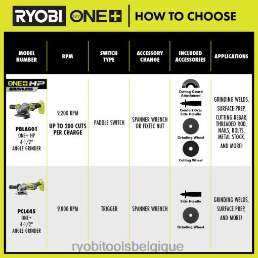 étendez votre système ryobi 18v one+ avec la meuleuse d’angle ryobi 18v one+ 4-1/2″. la meuleuse d’angle 18v one+ 4-1/2″ offre une commodité sans fil et une puissance de 9 000 tr/min pour enlèvement de matière rapide. le broyeur permet des changements d’accessoires sans tracas avec un stockage de clé intégré. cet outil présente une conception ergonomique optimisée pour une coupe à ras, une poignée à 3 positions pour un contrôle maximal et une protection réglable sans outil pour une polyvalence accrue. cette meuleuse d’angle 18 V One+ 4-1/2″ bénéficie de la garantie du fabricant Ryobi de 3 ans et comprend (1) meuleuse d’angle PCL445 18 V One+ 4-1/2″, (1) poignée latérale, (1) meuleuse de type 27. protection, (1) meule, (1) clé à molette et manuel d’utilisation. batterie et chargeur vendus séparément.