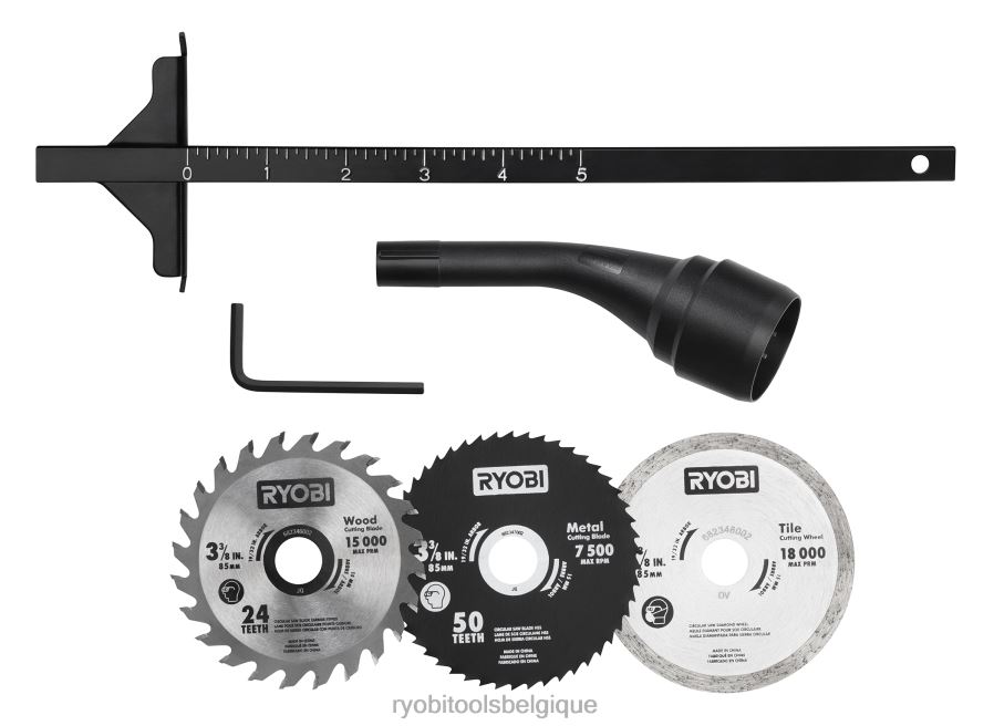 - comprend : (3) lames de 3-3/8 po, un guide de bord, un port anti-poussière et une clé hexagonale