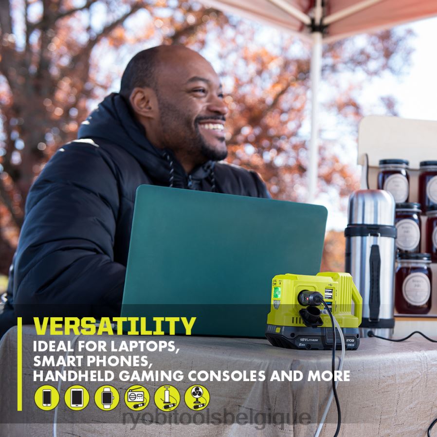 La source d’alimentation par batterie Ryobi 18 V One+ de 120 watts avec prise de courant 12 V CC est la solution d’alimentation portable parfaite pour une utilisation à la maison ou en déplacement. Idéale pour alimenter des glacières/réfrigérateurs 12 V, des gonfleurs, des chauffe-plats et plus encore, cette source d’alimentation comprend également une gamme de ports USB pour charger ou alimenter de petits appareils comme des tablettes, des téléphones, des montres intelligentes, des consoles de jeux portables ou des équipements photo ! cette source d’alimentation est équipée de (1) prise de port de type C, (2) ports USB-A, (2) ports de charge rapide USB-A et (1) prise de courant 12 V CC. vous pouvez utiliser les ports USB pour charger jusqu’à (5) appareils à la fois, ce qui en fait une source d’alimentation extrêmement polyvalente. la prise type-cvous permet de charger des appareils plus récents comme les smartphones, les consoles de jeux et certains. utilisez cette source d’alimentation pour charger des appareils en cas de panne de courant ou lors de vos déplacements. la conception compacte et légère rend cette source d’alimentation parfaite à emporter partout. utilisez la lampe de travail LED intégrée pour éclairer la zone lorsque vous utilisez cette source d’alimentation dans l’obscurité. cette source d’alimentation est compatible avec n’importe quelle batterie Ryobi 18v one+. la source d’alimentation par batterie Ryobi 18 V One+ de 120 watts avec prise de courant 12 V CC bénéficie d’une garantie limitée de 3 ans.