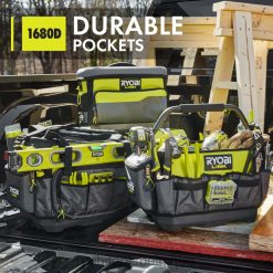 le système de stockage modulaire Ryobi Link révolutionne l’industrie du stockage, vous permettant d’organiser, d’accéder et de transporter votre vie. le sac à outils Ryobi Link 17″ est conçu pour gérer les situations les plus difficiles. La capacité de poids de 60 lb, les poches robustes 1680d et le matériau résistant à l’eau protègent vos outils pendant le transport. L’organisation est infinie avec 39 poches intérieures et un séparateur réglable. la poche latérale rigide offre une protection supplémentaire pour les téléphones ou les lunettes tandis que les sangles de niveau intégrées et le clip pour mètre à ruban maintiennent ces objets facilement accessibles. transportez-le à l’aide de la poignée supérieure ou de la bandoulière rembourrée incluse. l’ouverture en forme de U offre une capacité de stockage maximisée et un expérience améliorée pour afficher tous les contenus sans creuser.Surtout, il fait partie de la gamme de produits du système de stockage modulaire Ryobi Link qui utilise la même technologie de verrouillage pour connecter de manière transparente vos besoins de stockage mobiles et fixes. Possédez votre espace avec le système de stockage modulaire Ryobi Link.